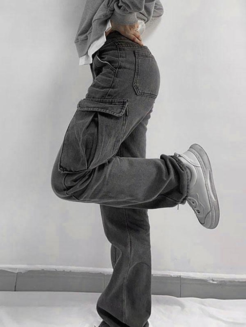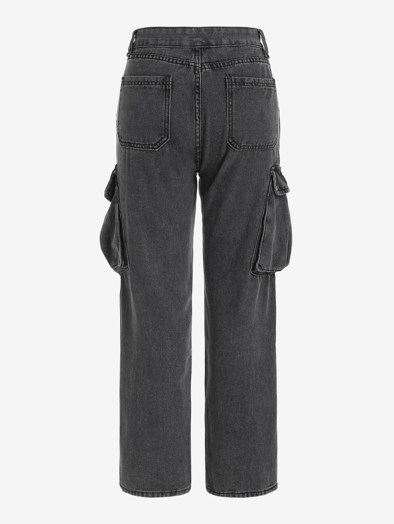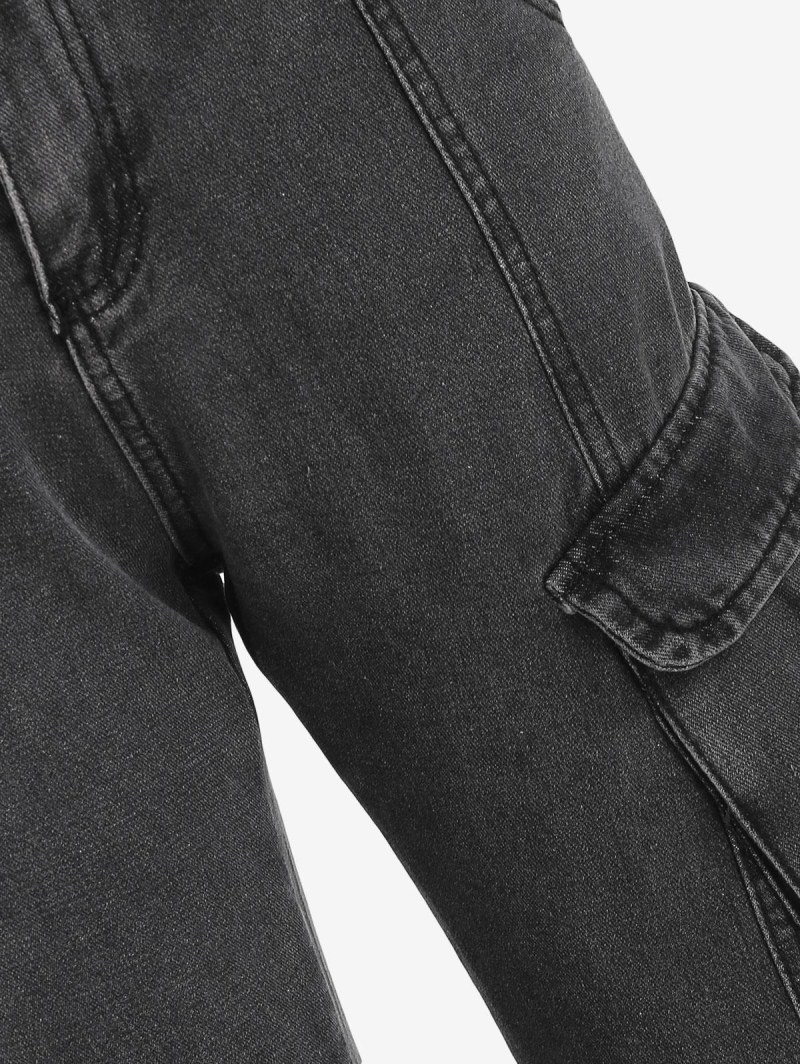 Faded Flap Pockets Tapered Cargo Jeans