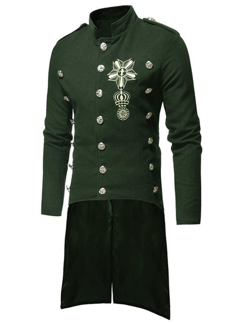 Triple Breasted High Low Hem Embroidery Woolen Coat