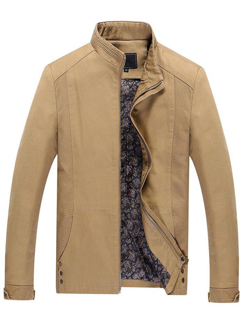 Casual Solid Pouch Pocket Zipper Up Jacket