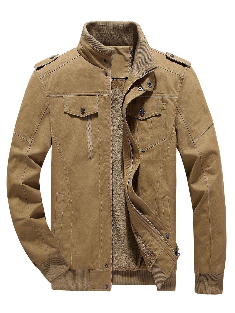 Fluffy Lined Warm Stand Collar Pockets Jacket