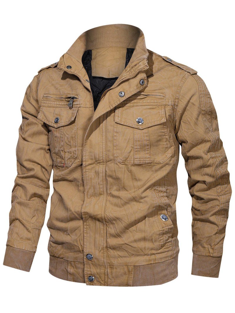 Creased Zip Up Multi Pockets Cargo Jacket