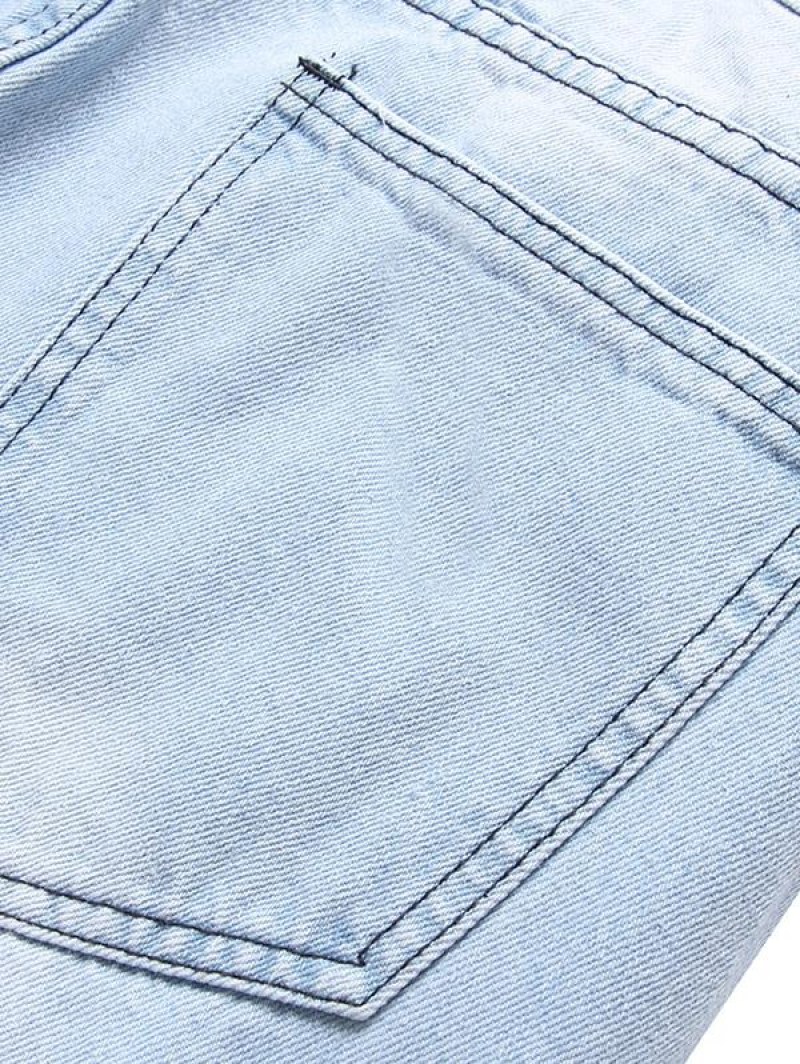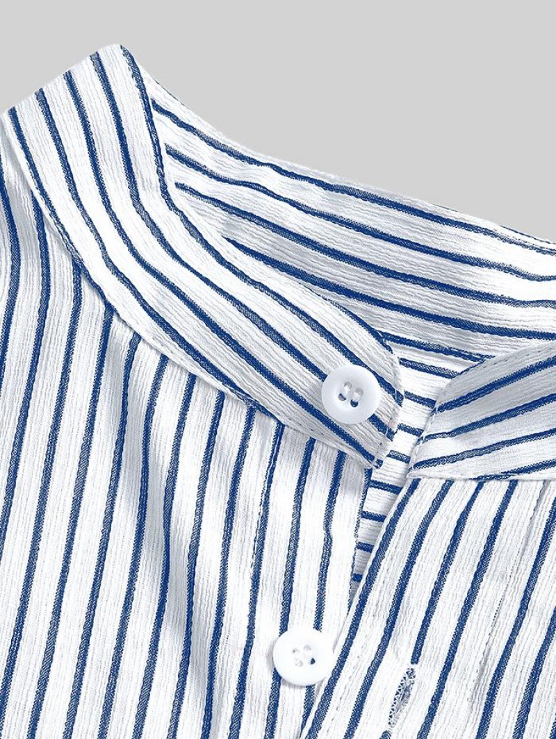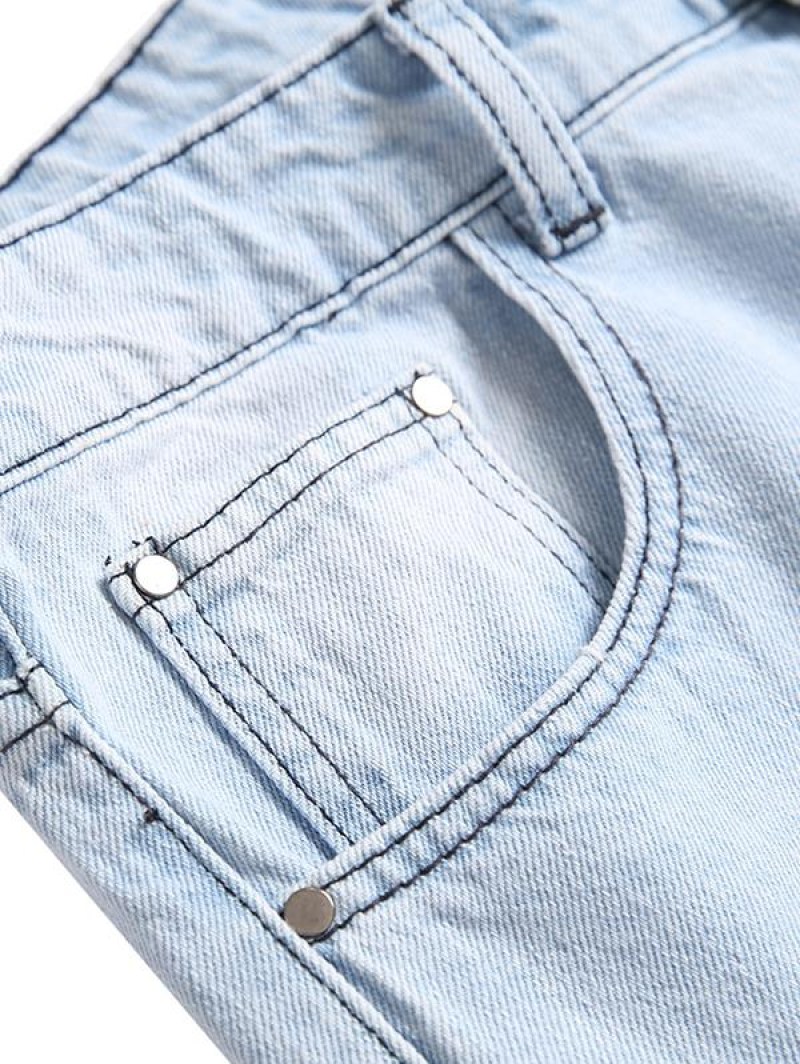 Striped High Low Shirt With Ripped Faded Demin Jeans Two Piece Set