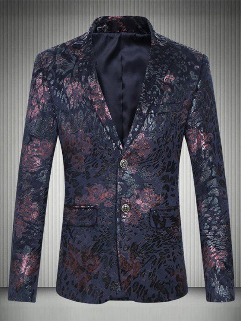 Plus Size Floral Printed Lapel Single Breasted Design Blazer