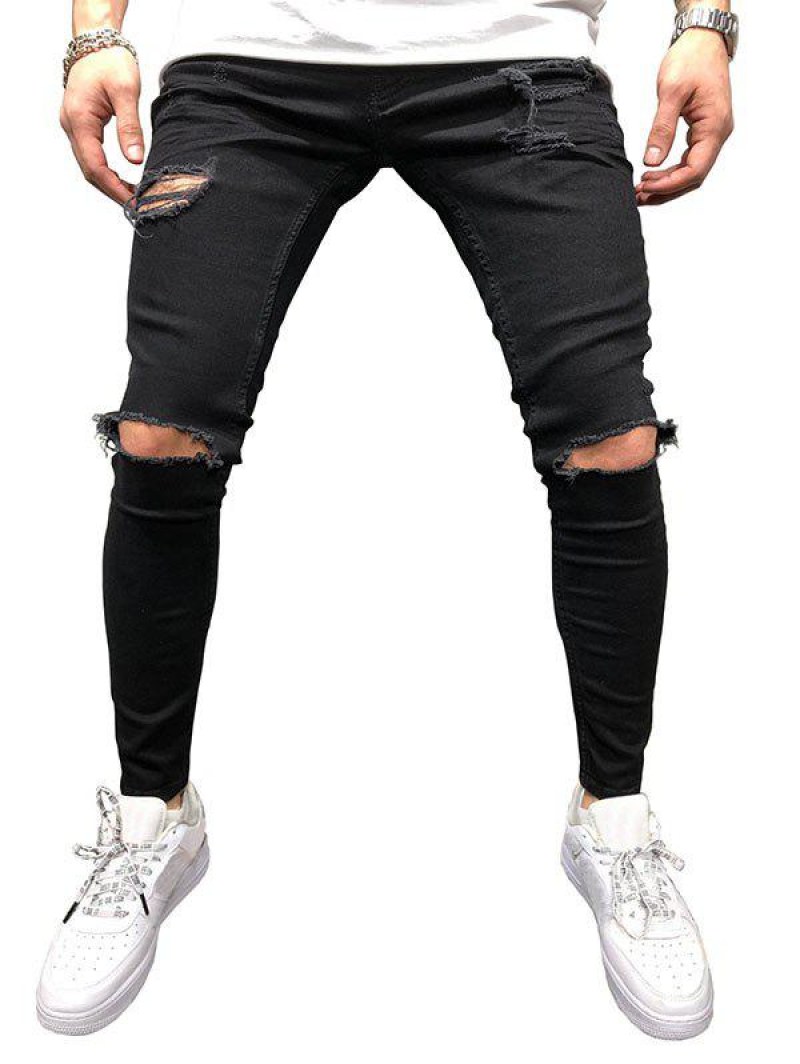 Solid Color Hole Design Jeans