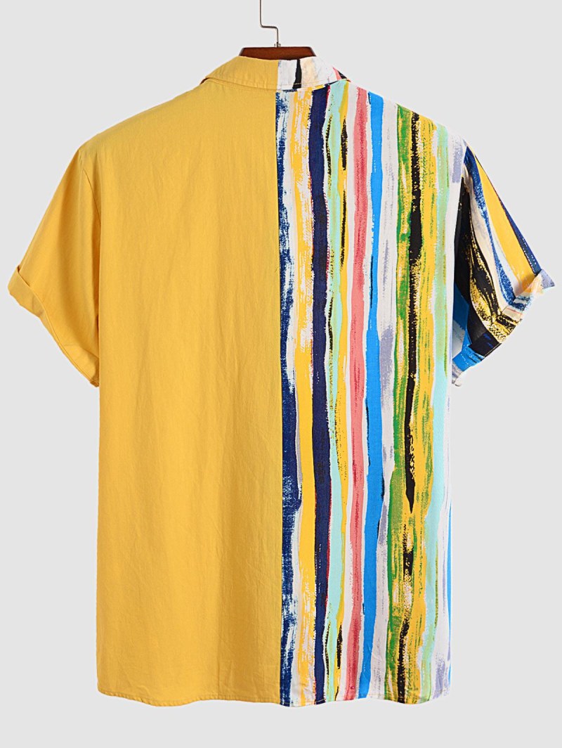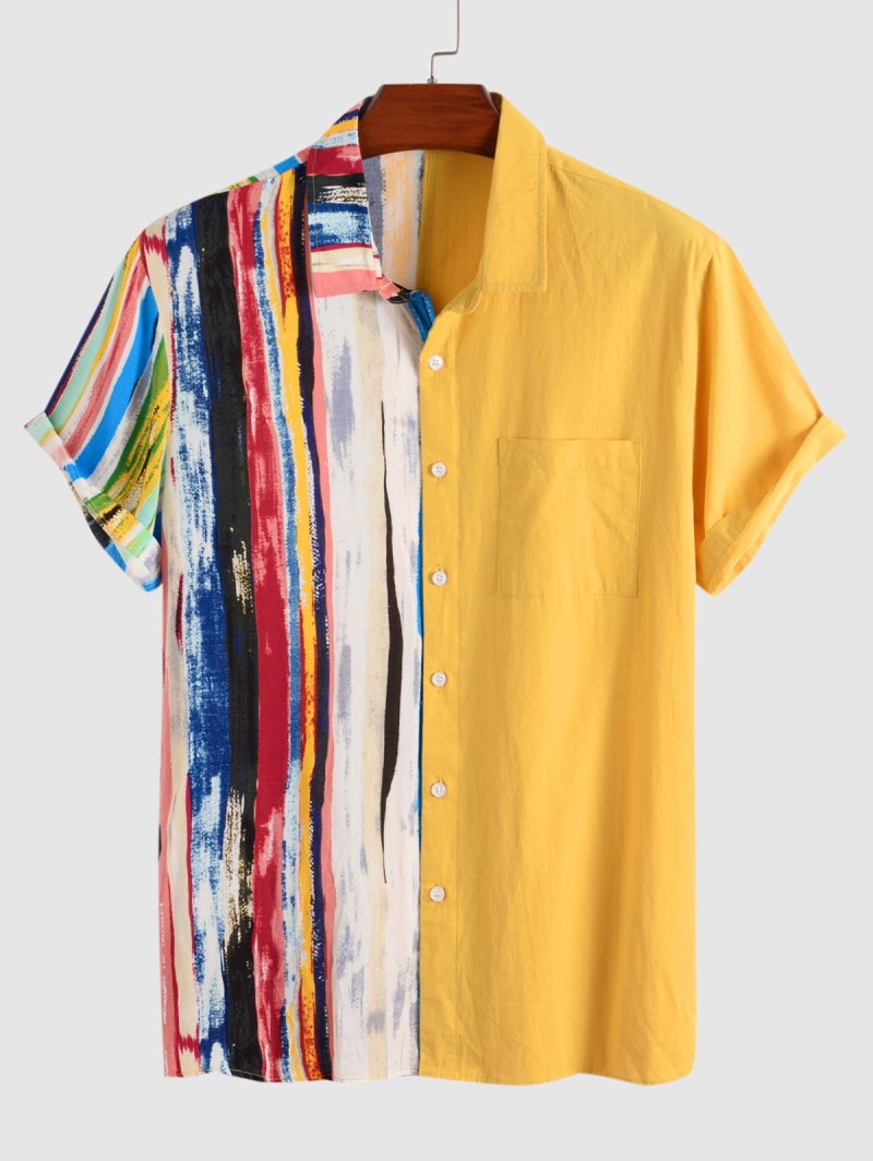 Button Up Front Pocket Tie Dye Stripes Shirt
