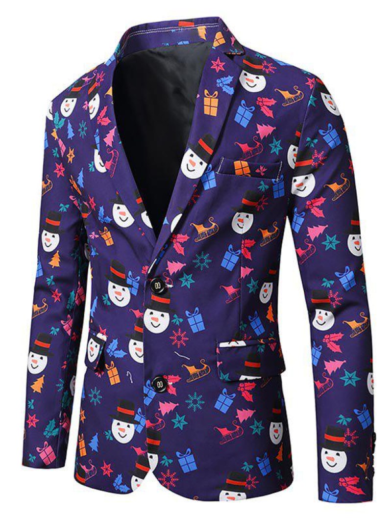 Christmas Tree Snowman Print Lapel Side Slit Blazer