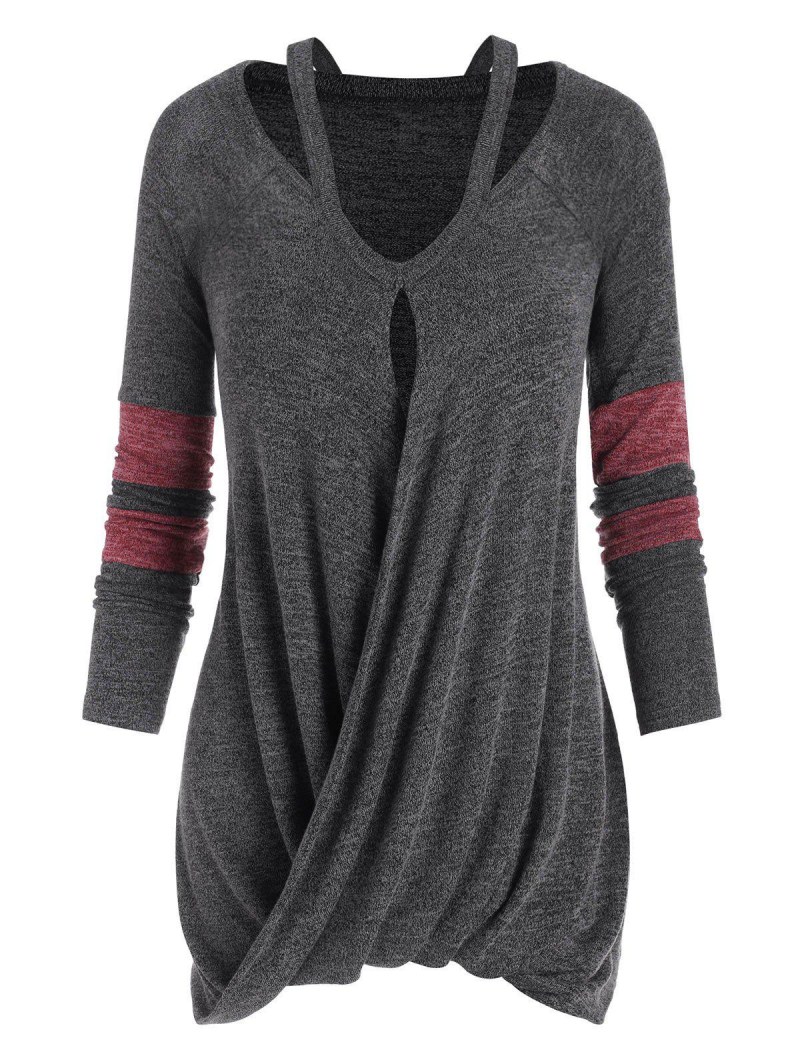 Draped Front Raglan Sleeve Cutout Tee