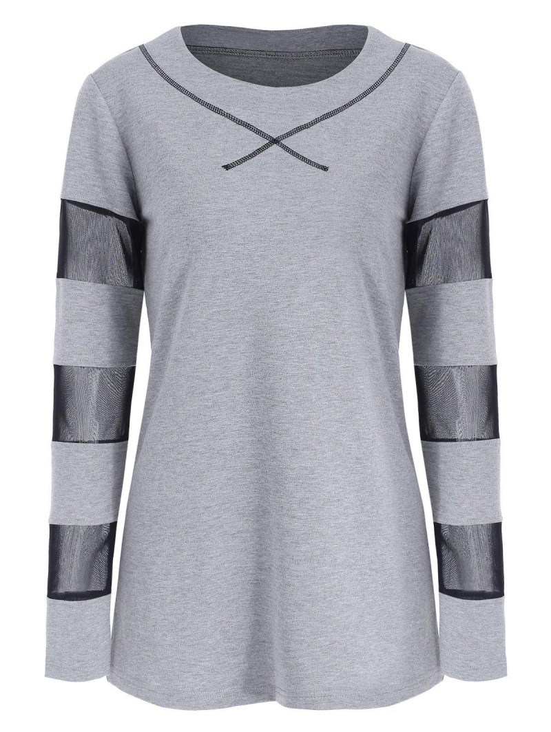 Long Sleeve Breathable Mesh Panel T-shirt