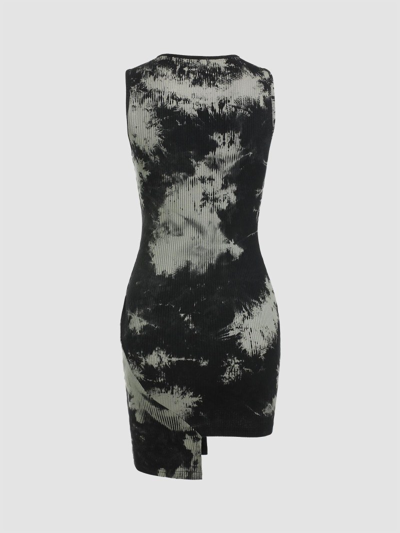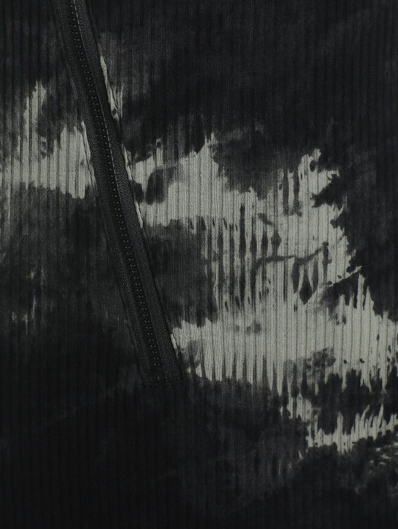 Tie Dye Ribbed Zipper Asymmetric Dress